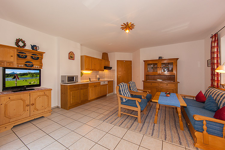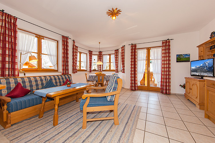 Die Ferienwohnung ist im bayerischen Landhausstil gemütlich eingerichtet und mit Flachbild-TV (SAT), Radio, Selbstwähltelefon, DVD-Player, Stereoanlage, kostenlosem WLAN und Balkon ausgestattet.