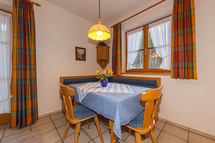 Die Ferienwohnung ist im bayerischen Landhausstil gemütlich eingerichtet und mit Flachbild-TV (SAT), Radio, Selbstwähltelefon, DVD-Player, Stereoanlage, kostenlosem WLAN und Balkon ausgestattet.