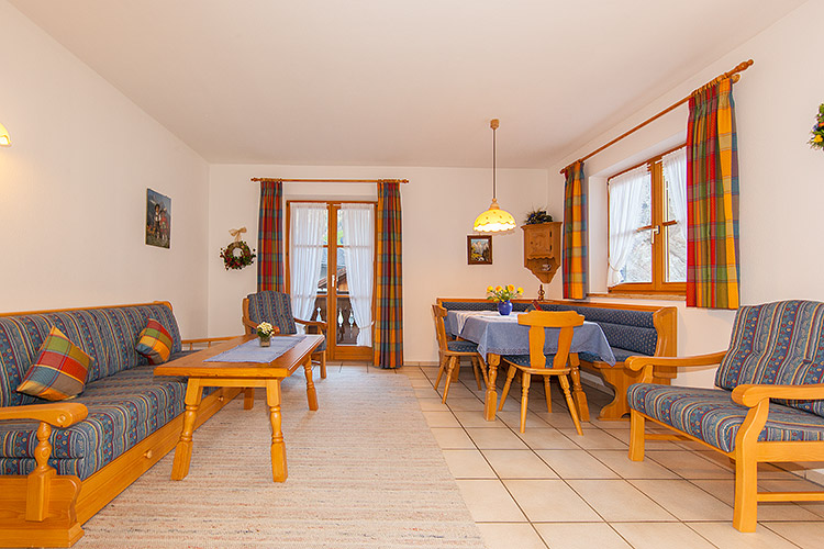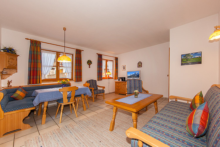 Die Ferienwohnung ist im bayerischen Landhausstil gemütlich eingerichtet und mit Flachbild-TV (SAT), Radio, Selbstwähltelefon, DVD-Player, Stereoanlage, kostenlosem WLAN und Balkon ausgestattet.