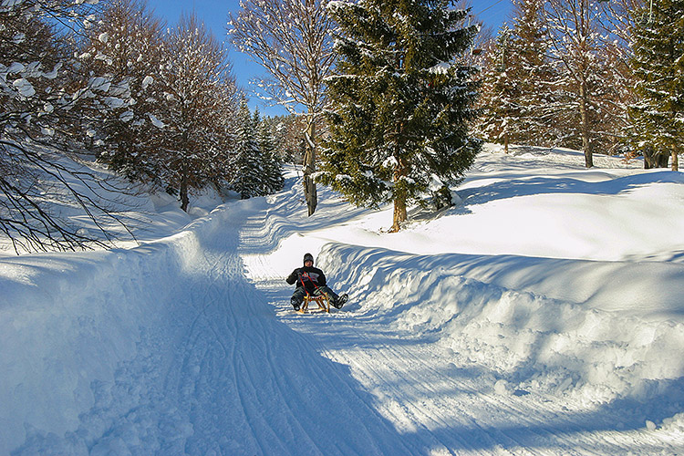 Schlittenfahrt auf der Rodelbahn am Kranzberg