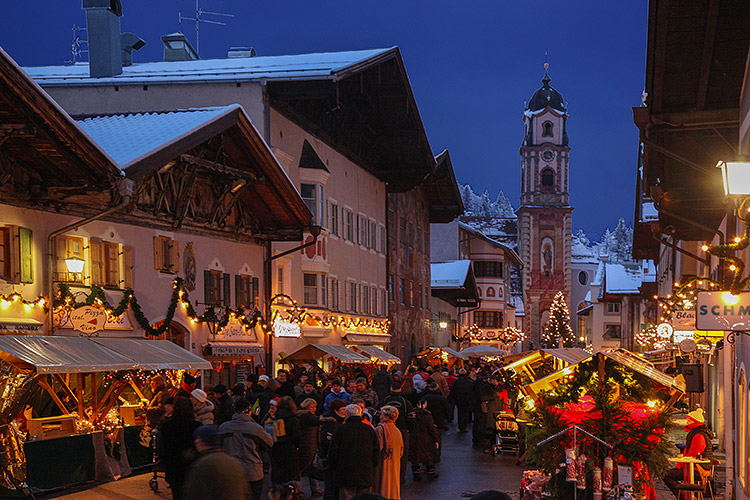 Mittenwalder Obermarkt (Fußgängerzone) im Winter